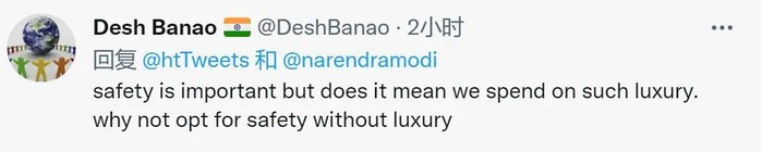 眼下印度国内麻烦不少,在《印度斯坦时报》推特评论区,一些网友对莫迪此时购置奢华豪车表达了不满。↓