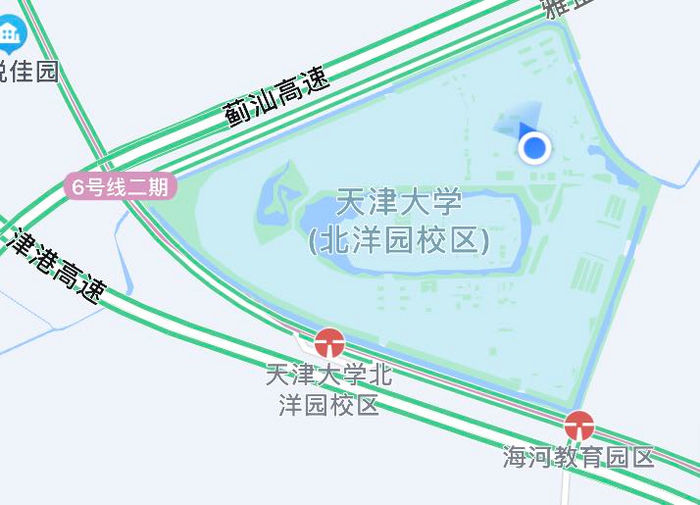 地铁6号线二期在北洋园校区共设车站两座,分别为天津大学北洋园校区站及海河教育园区站(天大元素特色站)。其中,天津大学北洋园校区站位于北洋园校区南门西侧约200米处,乘车师生可通过D口抵达南门;海河教育园区站(天大元素特色站)位于北洋园校区东南门东侧约200米处,乘车师生可通过A口抵达东南门。