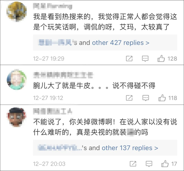 然而,在该微博评论区,部分网友却称红果果“较真”,网友只是在“调侃”。对此,红果果表示,“看玩笑也得有个度”,她能理解,但家里的老人们理解不了。