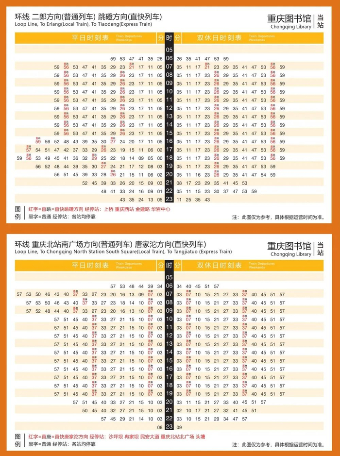 环线、4号线、5号线直快车时刻表