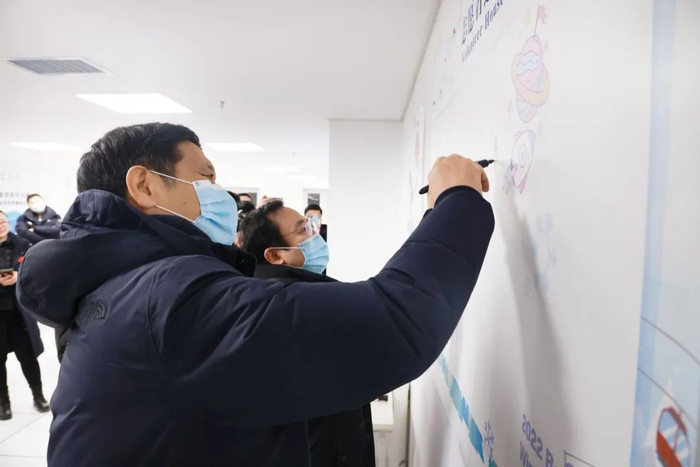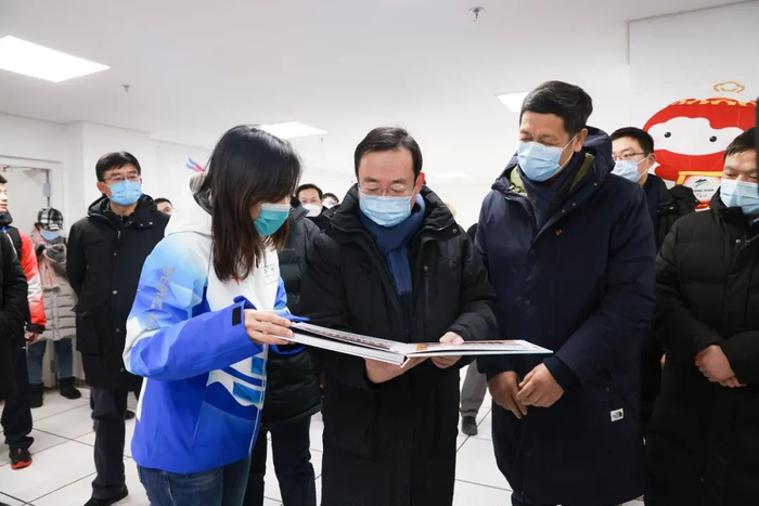 夏林茂书记亲切地与志愿者交流,关切地问到志愿者关于学业、生活方面的困难,叮嘱志愿者务必要注意身体,安全第一。同时勉励志愿者,北京2022年冬奥会与冬残奥会是运动员的盛会,也是志愿者的盛会,能服务冬奥会是志愿者难得的人生经历和成长,志愿者们要不负时代,不负韶华,展现当代大学生的青春风采。