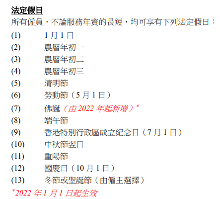 据中国香港特别行政区政府网站,香港《雇佣条例》中的法定假日以中国传统节日为主,其中一天法定假日由雇主选择给员工放冬至或圣诞节。