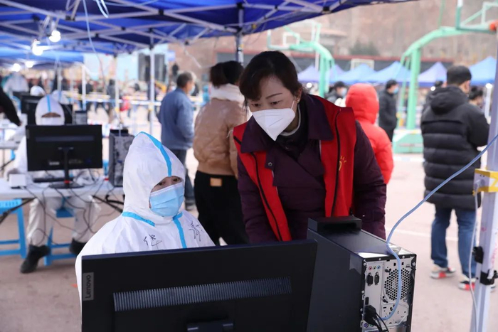 志愿者正在进行核酸检测的信息录入工作