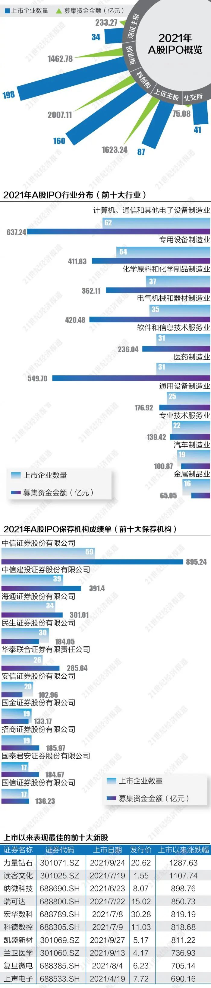 相关报道:2021年A股IPO盘点:上市企业520家,前十是这些行业(21世纪经济报道)