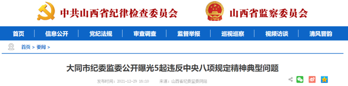 近日,大同市纪委监委公开曝光5起违反中央八项规定精神典型问题。具体如下。