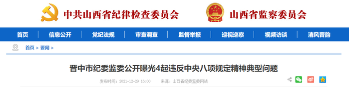 近日,晋中市纪委监委公开曝光4起违反中央八项规定精神典型问题。具体如下。