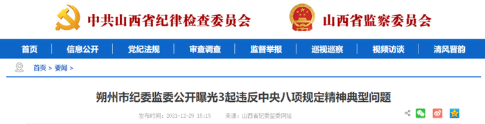 忻州、朔州、晋中、大同公开曝光多起违反中央八项规定精神典型问题