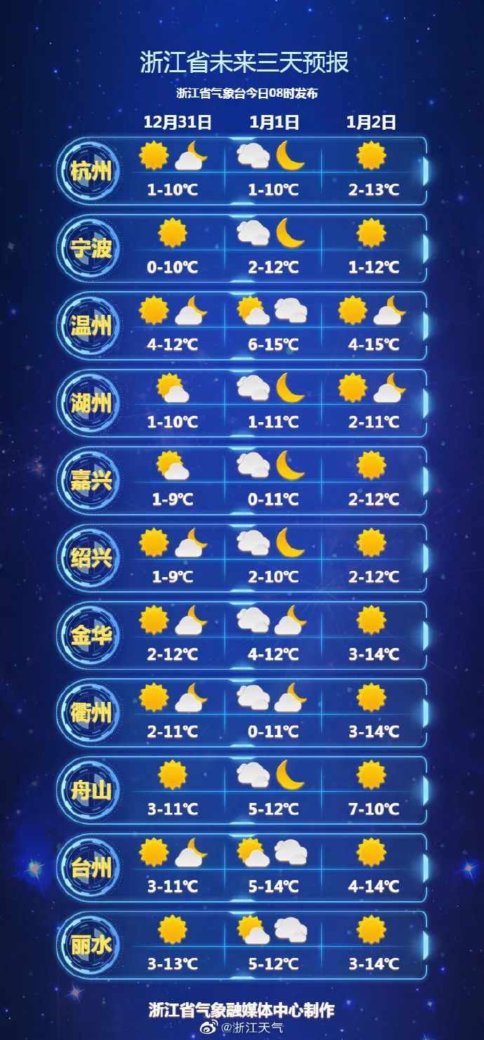 元旦假期浙江天气如何?