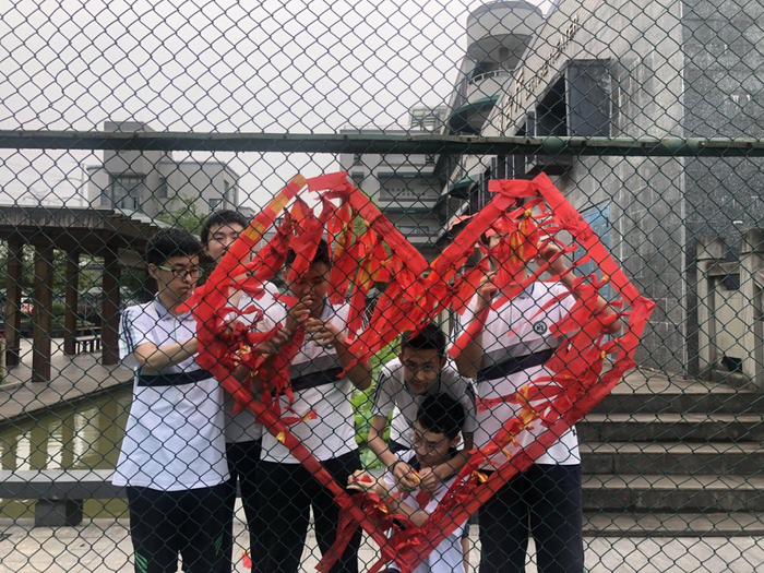 几个小伙伴,在中考前一日,笨手笨脚地用红布拼出了一个加油爱心。