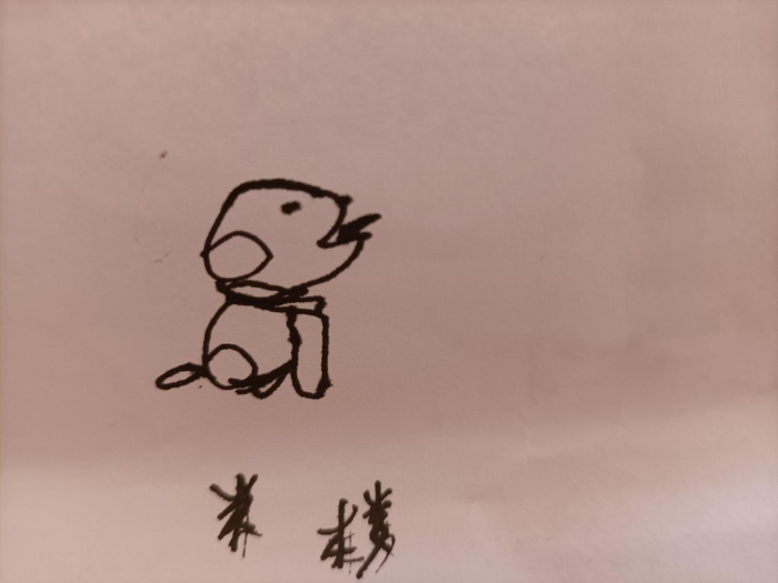 这是我爸爸画的小狗,那天他在计算工地用料,偷闲画的。平时严肃的他也有可爱的一面。
