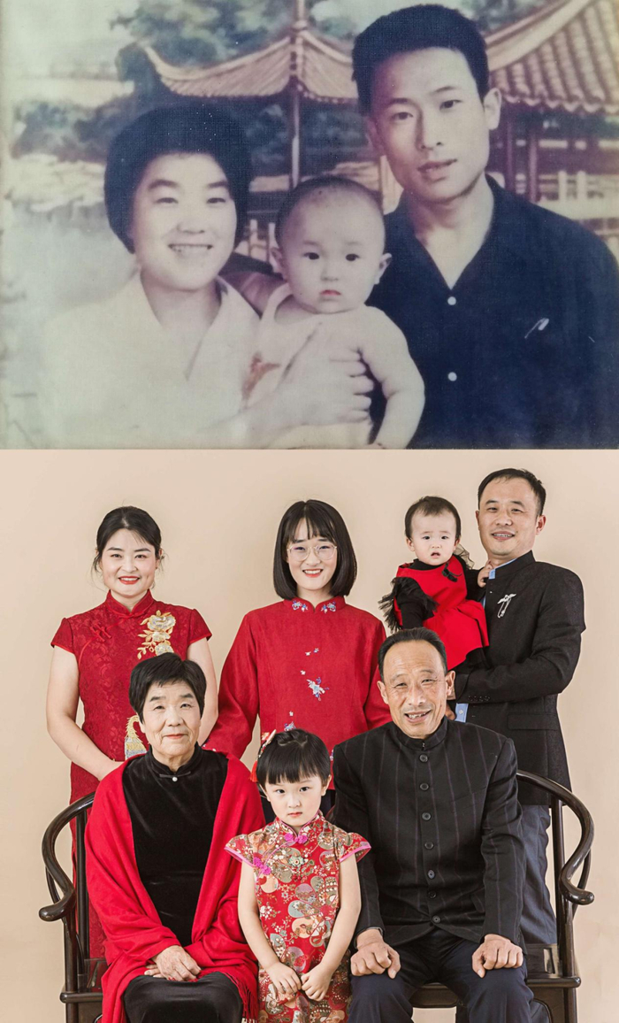 一张全家福。更迭变化的三十年时光,不变的家和万事兴。