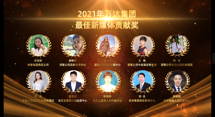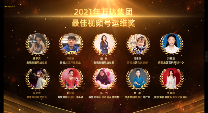 线上新媒体大会热闹非凡,在新媒体人的私域社群里,还进行了一项年度重磅奖项的评选。11382名万达人,投出56910票,从16个候选案例中,选出了2021年万达新媒体5大年度创新案例。
