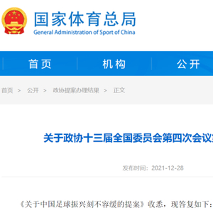争议的来源是国家体育总局官网在2021年12月28日发布的《关于政协十三届全国委员会第四次会议第4968号(医疗体育类624号)提案答复的函》。该文的第四部分“关于加强足球运动员管理的建议”提到:
