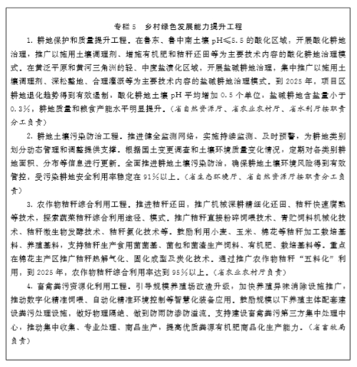 2.推进农业绿色低碳发展。完善促进绿色农业投入品使用的政策措施,开展绿色农业投入品使用试点。推行测土配方施肥,加快推广生物有机肥、缓释肥等绿色肥料。集成推广生态调控、理化诱控、生物防治、生物农药等病虫害绿色防控技术产品。推广使用安全绿色兽药和饲料添加剂。大力推广节水、节肥、节药技术,全面开展秸秆综合利用和农膜、农药包装废弃物回收,提高农业灌溉水有效利用系数,加大力度做好农业投入结构调整,减少化肥农药使用量,增加有机肥施用量,实现化肥、农药使用减量化,完成国家下达的目标任务。大力发展种养结合、生态循环农业,评定省级农业绿色发展先行县30个。(省农业农村厅、省生态环境厅牵头,省畜牧局配合)
