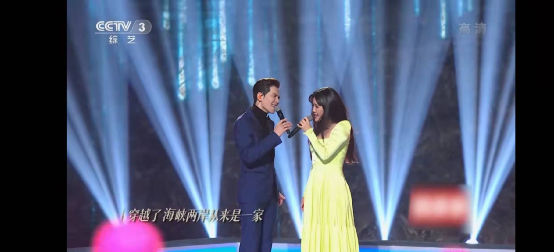 2021年12月31日晚央视跨年晚会的舞台上,台湾歌手萧敬腾与大陆歌手袁娅维联袂用普通话与闽南语共同演绎“双语”歌曲《我们同唱一首歌》。歌词中,一句“寻根路,你我对话,穿越了海峡,两岸从来是一家”——唱出了两岸一家亲,唤起了对团圆的期盼。