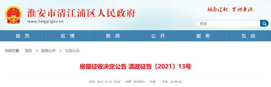 三、征收部门:淮安市清江浦区住房和城乡建设局。