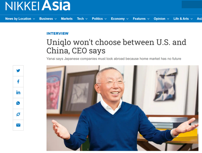 在这篇采访报道开头,《日经亚洲评论》直奔主题,围绕中美关系对柳井正提问。
