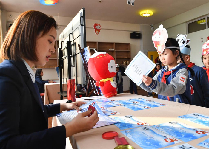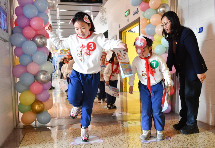 新华社太原1月6日电(记者许雄、柴婷)戴着“冰墩墩”“雪容融”的头饰,穿梭在“滑雪馆”“雪车馆”,转大转盘抽签,带着抽到问题的卡片口述答案……在山西省太原市杏花岭区新建路小学,一场针对一二年级学生的别开生面的“期末考试”正热火朝天地进行着。