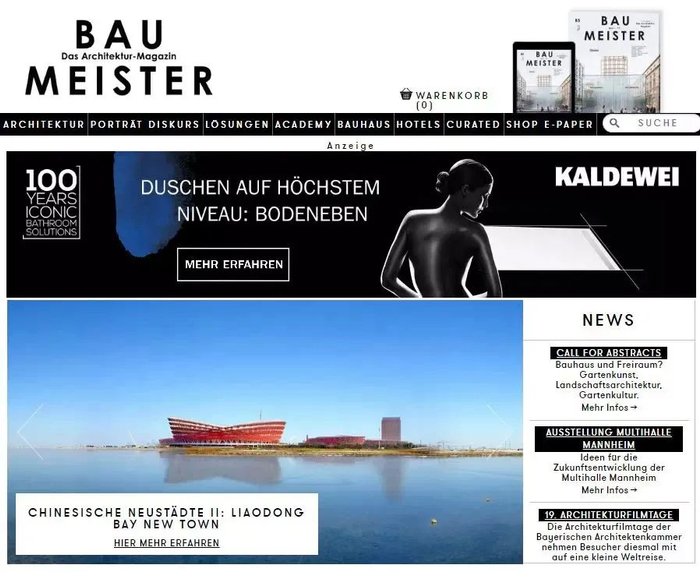 德国著名杂志《建筑大师》官网以“整体设计观下的辽东湾”进行了专门介绍