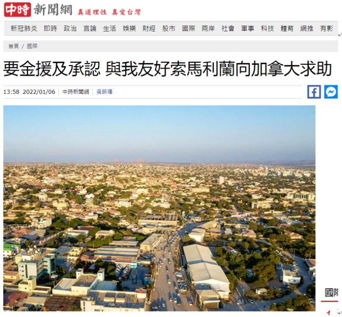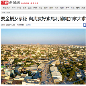 【环球网综合报道 记者 赵友平】台湾“中时新闻网”1月6日消息称,与台湾“友好”的索马里兰传出寻求加拿大的国际承认及金援,声称获得西方国家承认对于索马里兰“对抗中国大陆在非洲的影响力相当重要”云云。