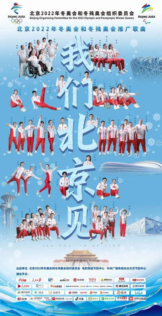 一改过去收获巨大成功的演艺明星接力演唱模式,《我们北京见》的邀约,由55名来自中国的体育世界冠军一齐发出。