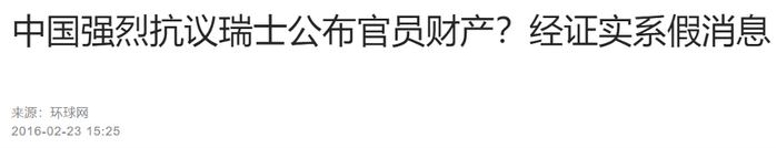 2016年2月,环球网刊文对网传消息进行辟谣。此文章写道,环球网“在查询中国外交部网站并向相关人士核实后发现此信息系假消息。中方未就“瑞士提交外国人账户消息”发表过此种回应,网上流传的关于中国外交部回应的新闻系假新闻。”