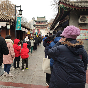 2022年1月9日,天津市南开区,市民在鼓楼街核酸检测点间隔1米排队等待检测。人民视觉 图