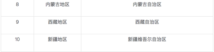 仅对涉及省份超过7个的,使用一级区划和特定区域区划名称;