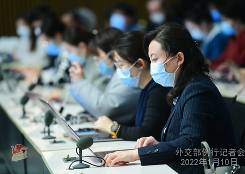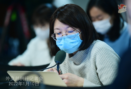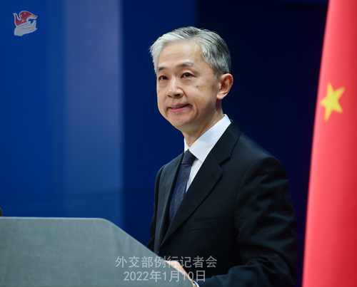 原标题:2022年1月10日外交部发言人汪文斌主持例行记者会