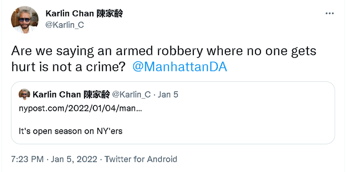 与此同时,在马耀潘逝世几天后,在纽约的曼哈顿地区,当地的新任黑人检察官Alvin Bragg宣布,他将放宽对一系列犯罪行为的检控力度,除了性犯罪、腐败、杀人和严重的家庭暴力案件,他将对其他较轻的犯罪行为要么减少检控的刑期,要么力求不起诉。他还称这将有利于保护有色人种免于种族歧视性质的执法。