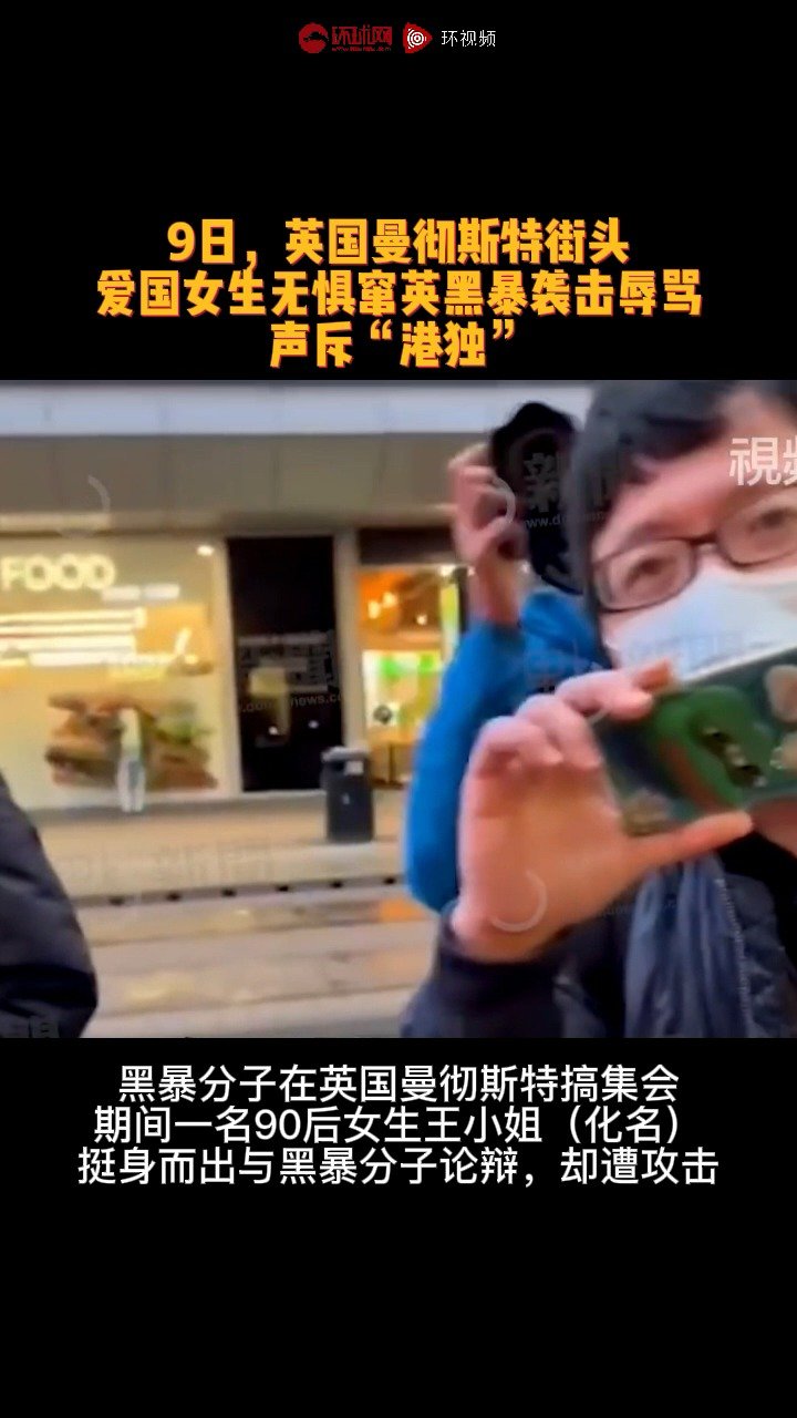 [环球网报道]9日,英国曼彻斯特街头一名爱国女生无惧窜英黑暴袭击辱骂,严词斥责“港独”。“你要分裂我的国家,我凭什么不能和你争论!我的国家在中国,我永远都是中国人!你可以有你的观点,但是我绝对不允许你分裂我的国家!” 据@领事直通车 刚刚消息,驻曼彻斯特总领馆已电话慰问王女士,并要求英国警方尽快缉拿施暴者,保障当事人安全和正当权益。
