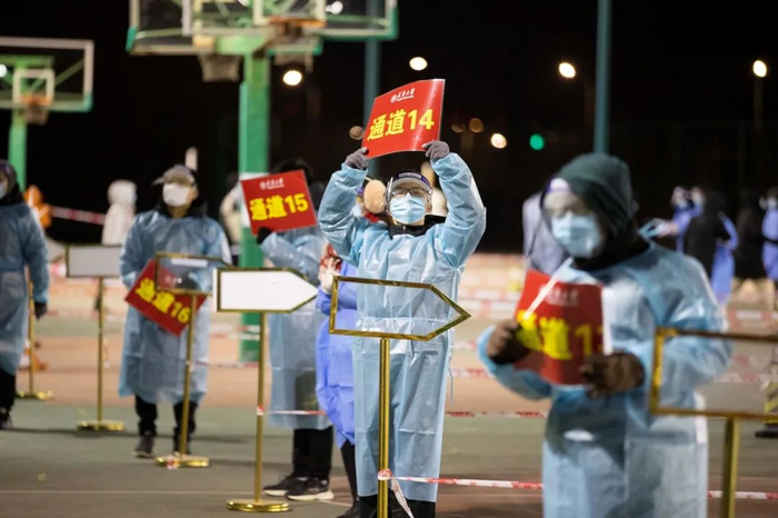 1月11日凌晨,天津大学连夜组织北洋园校区在校同学参加第二轮全员核酸检测