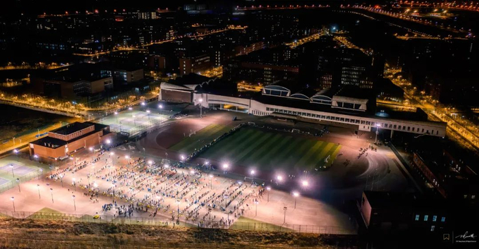 在核酸检测现场参与志愿服务的学生张铜,也把冬夜里的操场称作“战场”。他说:“我们刚刚下‘战场’,昨天晚上又进行了第二轮核酸检测。速度很快。”