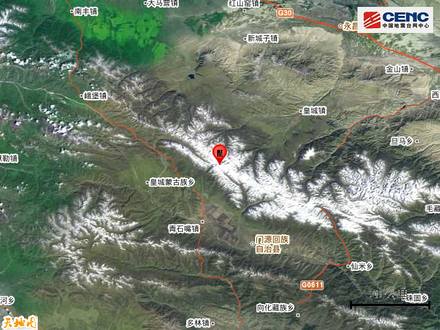 附近村镇:本次地震周边5公里内的村庄有老虎沟西岔、黑沟、岗什卡达板,20公里内无乡镇驻地分布,50公里内的乡镇有青石咀镇、峨堡镇、浩门镇、皇城蒙古族乡、东川镇、苏吉滩乡、仙米乡、泉口镇、北山乡、浩亹古镇。