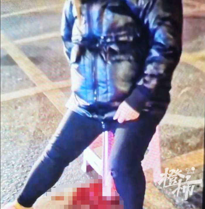 在医院大门外等候到晚上10点多,事态突然紧急,家属拍下了等待中的孙女士,板凳下有一滩鲜红的血。
