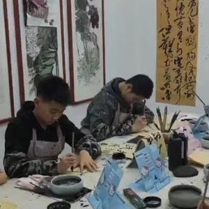 在银川市一家书画院,孩子们正在学写毛笔字和学画国画。(受访者供图)