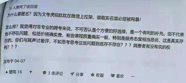 近日,北京一高校研究生张铭(化名)在知乎留言区发表对"文科考研网"的评价被起诉至法院一事引发热议。