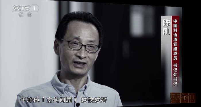 陈刚(中国科协原党组成员书记处书记):我感恩党的审查和法律的制裁,这些都对你是一种救赎,是一种拯救。因为在这个时候,你去掉了这些污泥浊水之后,才可能有一个干净的灵魂,过一种新的生活。把过去那些彷徨、惶惶不可终日,那种纠结的人生状态扔掉了,我现在的精神状态跟过去相比,我认为要健康得多。