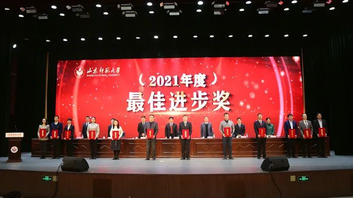 会议表彰了2021年度学校十佳单位、特别贡献奖、突出贡献奖、最佳进步奖获得者。邢光宣读关于表彰十佳单位的决定,王传奎宣读关于表彰2021年度特别贡献奖、突出贡献奖、最佳进步奖的决定。学校领导为获奖单位颁发荣誉证书及奖牌。最佳进步奖代表、档案馆(校史馆)馆长陈炜,突出贡献奖代表、信息化工作办公室主任苑兆忠,特别贡献奖代表、音乐学院院长李海鸥,十佳单位代表、物理与电子科学学院院长蔡阳健先后发言。