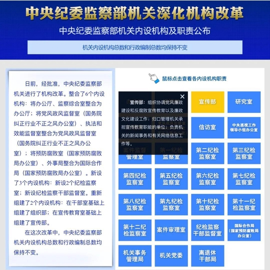 官方网站显示,中央纪委国家监委宣传部的主要职责是组织协调党风廉政建设和反腐败宣传教育以及廉政文化建设工作;归口管理机关承担宣传教育职能的单位;负责机关的新闻事务和有关网络信息工作等。
