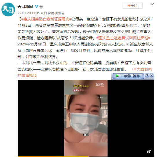 2022年1月19日,澎湃新闻(www.thepaper.cn)从权威渠道获悉,重庆姐弟被生父从楼上扔下坠亡案被告人张波、叶诚尘在法定上诉期内递交了材料,提出上诉。