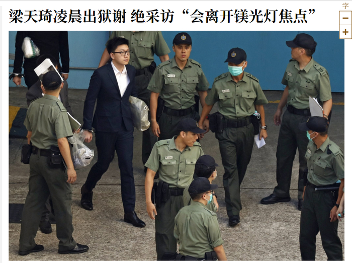 有港媒19日评论称,从家人希望梁天琦出狱后过低调的生活,到执法部门对其出狱做足预案,都在说明“虽然梁天琦已为自己的行为付出代价,得到应有惩罚,但他能否真正回归‘正常’,仍是个疑问”。