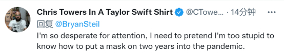 还有人模仿他的口吻讽刺:“我是如此渴望得到关注,我要假装我太蠢了,疫情已经两年,我都不知道如何戴口罩。”↓