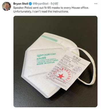 看到国会发放的KN95口罩印有“中国制造”,美议员又有想法了。