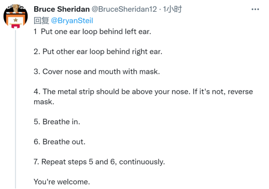 还有人更绝,列出戴口罩的详细步骤讽刺他。↓