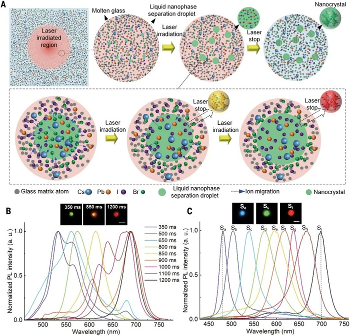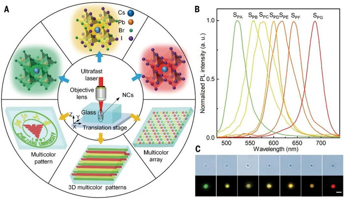 研究成果以《玻璃中稳定的钙钛矿纳米晶体三维直写》(Three-dimensional direct lithography of stable perovskite nanocrystals in glass)为题发表在《科学》正刊,论文共同第一作者为浙大光电学院博士生孙轲、之江实验室PI谭德志、上海理工大学副教授方心远。