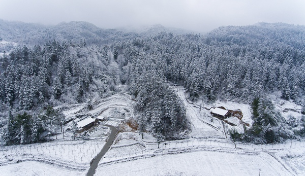 雪粉华,舞梨花,再不见烟村四五家。(福建省尤溪县纪委监委供 黄在锦 摄)