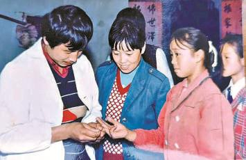 第一排平房是办公区,我时常在这里看父亲和同事们给前来就诊的人查病——先用酒精仔细擦拭着抽血针,并将针在酒精灯的火焰上快速掠一下,再捏起就诊人的无名指,迅速戳破指尖,一手微微挤血,一手迅速拿起白色透明的小细管接血。之后,将小细管一端往酒精灯的火焰上烫一下,拿起镊子将烫软处夹紧封口,贴上标签放好。收集好的血液,需要放入离心机,飞速转开后,血清和血细胞就分开了,再将血清滴到反应板上,加试剂30分钟后即可出结果。