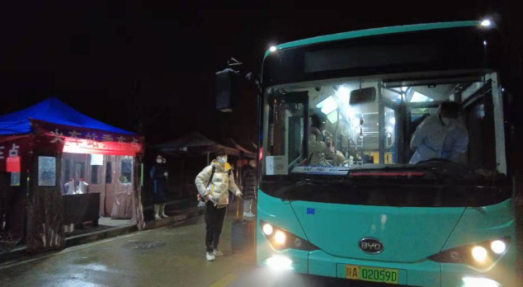 1月24日凌晨两点,风雪中,长安校区转运学生的第一辆大巴缓缓驶出校园,长安校区的20000多名学子开始分批次有序踏上了回家之路。