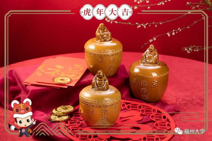“坛启荤香飘四邻,佛闻弃禅跳墙来。”佛跳墙作为闽菜中首屈一指的名牌佳肴,是年夜饭中的经典大菜。其又名福寿全,寓意着福寿双全。